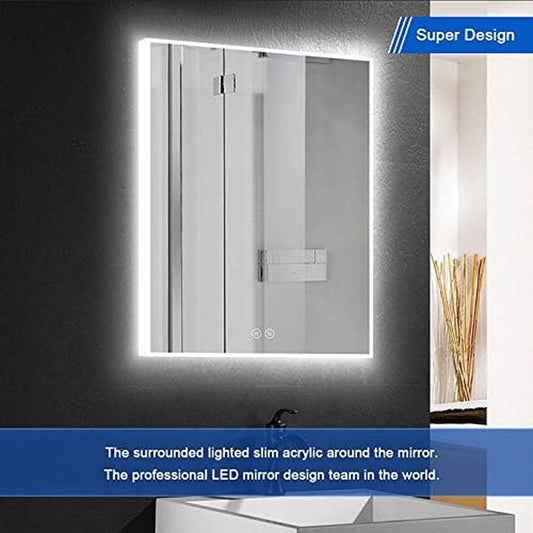 Dimmable LED Bathroom Mirror with Touch Button, anti Fog Slim Mirror with Cold White Lights, Vertical & Horizontal Mount Makeup Mirror over Vanity, 24X32 in (D-D414-2432)