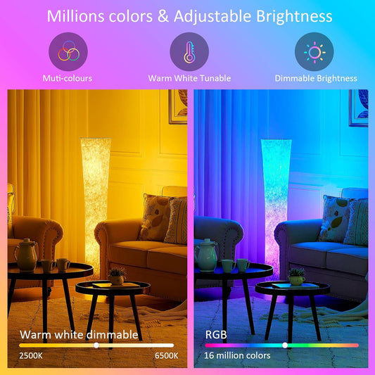 Floor Lamp, 52"(S) Standing Lamp, RGB Color Changing LED Bulbs, Adjustable Brightness Color Temperature, Purple Grandient Fabric Lampshade, for Living Room, Bedroom, Kids Room
